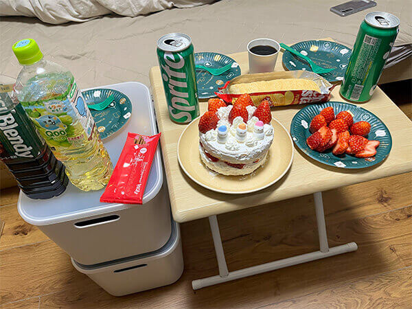 参加メンバーは代表、だい、n@suの3人で、持ち寄った飲食品に加え、だいの手作りのローストチキンとクリスマスケーキを食べました。